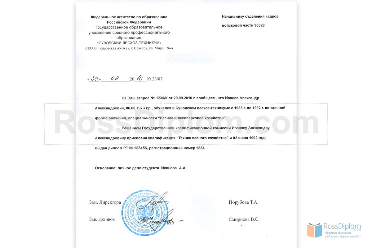 Архивная справка содержит информацию, подтверждающую хранящиеся в архивах организации сведения, а именно — факт Вашего обучения и наличие диплома о профессиональном образовании. Это та самая справка, которую требует (помимо самого диплома) работодатель, чтобы подтвердить факт Вашего обучения в ВУЗе, техникуме или колледже. Если Вы не можете получить официальную справку, решение о её покупке поможет решить и эту проблему.